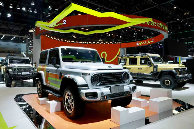 如果说侠客平台,是走向极限,那么远征平台,是走向更远,面向未来的全场景智能越野架构。展台中央的212越野车首款中大型SUV,直观地诠释了它的核心:美,重塑经典,“醒狮”前脸搭配克制而富有张力的型面,内饰融合科技与复古元素,让经典被重新创造;野,独一无二,发动机采用类似前中置布局的结构设计,整车质量分布更集中,越野动态更稳定,并塑造出富有力量感的车身姿态;智,智能平权,动力覆盖燃油至混动,引入地平线智驾方案及语音智能大模型座舱,实现越野场景智能化,推动越野从“经验驱动”转向“技术赋能”。