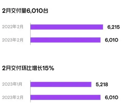 3月2日,小鹏汽车2023年2月新车交付数据公布。2023年2月小鹏汽车实现交付6010辆新车,同比小幅下降3.5%,环比1月份增长15%。