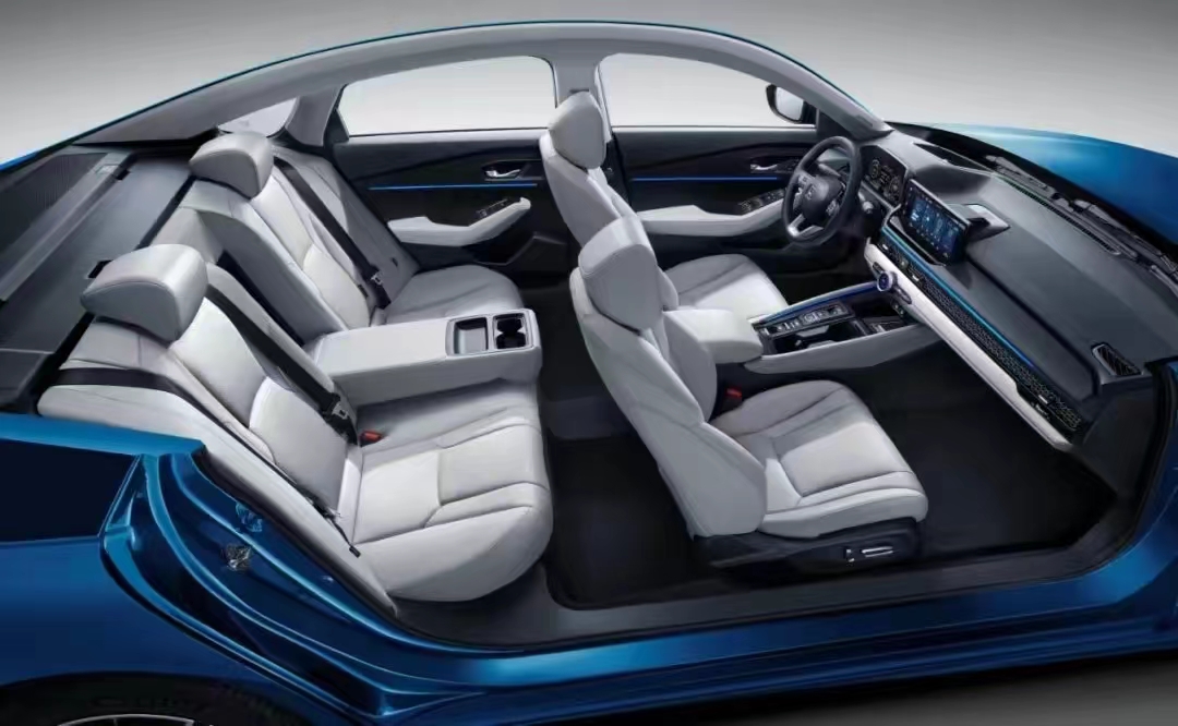 车内使用了本田最新的家族化设计语言,中控台为分层的造型,贯穿式的空调出风口是这一代本田车型的特征之一。人机交互部分由10.2英寸液晶仪表和12.3英寸中控大屏组成,内部搭载Honda CONNECT系统,支持手机互联、语音控制等功能,BOSE音响系统也出现在了全新雅阁的配置单中。
