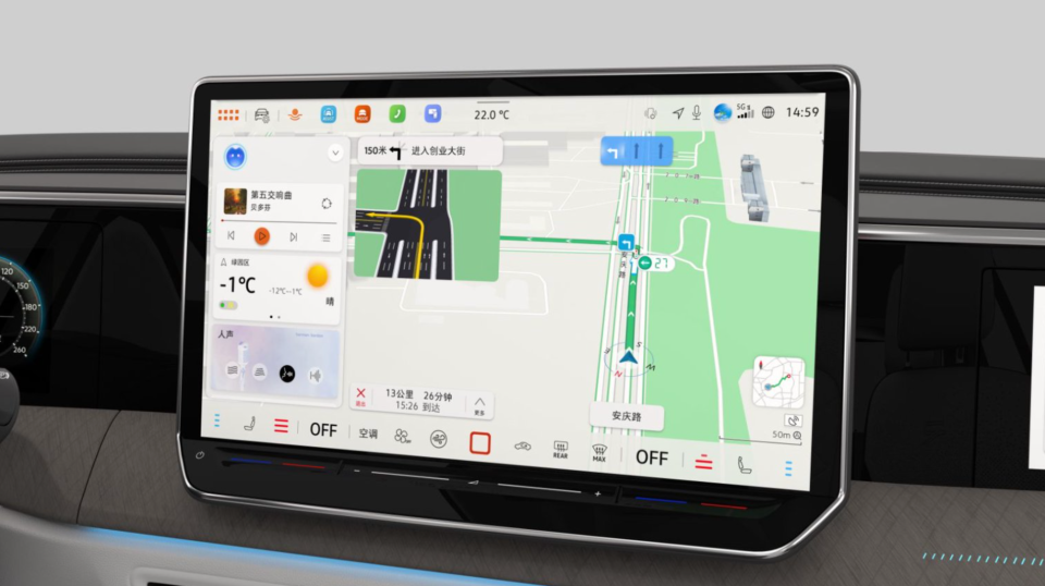 全新揽境的智能座舱以一块15英寸的2K超清中控大屏为核心,搭配11.6英寸副驾娱乐屏和10.25英寸全液晶仪表,构成了沉浸式的三联屏交互界面。这套系统的流畅性由高通8155智能座舱芯片和12GB大内存提供核心算力支持,确保了系统在多任务运行和复杂操作下依然响应迅捷。无论是滑动屏幕还是切换应用,操作都非常跟手。2K的高分辨率也让显示效果清晰细腻,提升了视觉舒适度。
