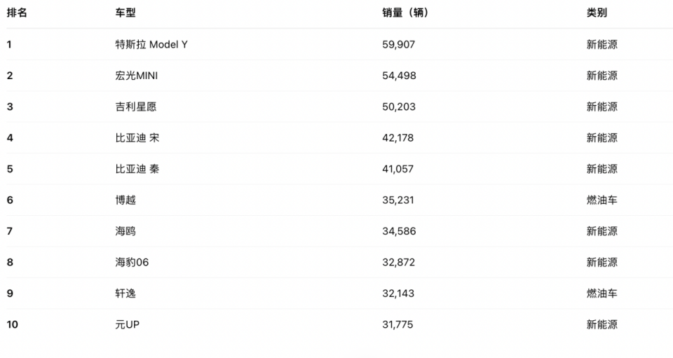 排名第一的是特斯拉Model Y,9月销量为59907辆。Model Y的持续热销,并非偶然,最重要的是Model Y没有明显的短板。它不像一些车型在某一方面特别突出却在另一方面有明显弱点,而是在续航、空间、性能、能耗、智能化等方面都做到了良好且均衡。对于大多数普通家庭用户而言,这种均衡的“水桶车”恰恰是最稳妥、最不容易出错的选择。
