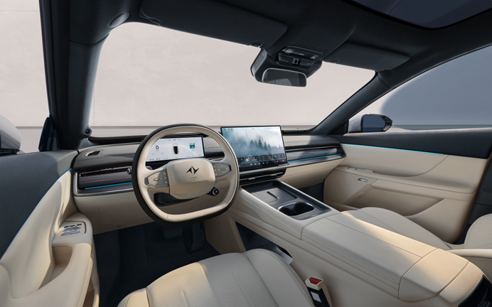 外在颜值吸睛,内在品质更见真章。eπ007+座舱内部采用超纤柔类麂皮绒包覆,搭配真皮加热方向盘、云感亲肌皮质座椅,在触感上传递温度。加上WANOS 2.0全景声音乐座舱、智能香氛系统及64色音乐律动氛围灯等配置,豪华感与舒适度直接拉满,让每一次出行都成为享受。