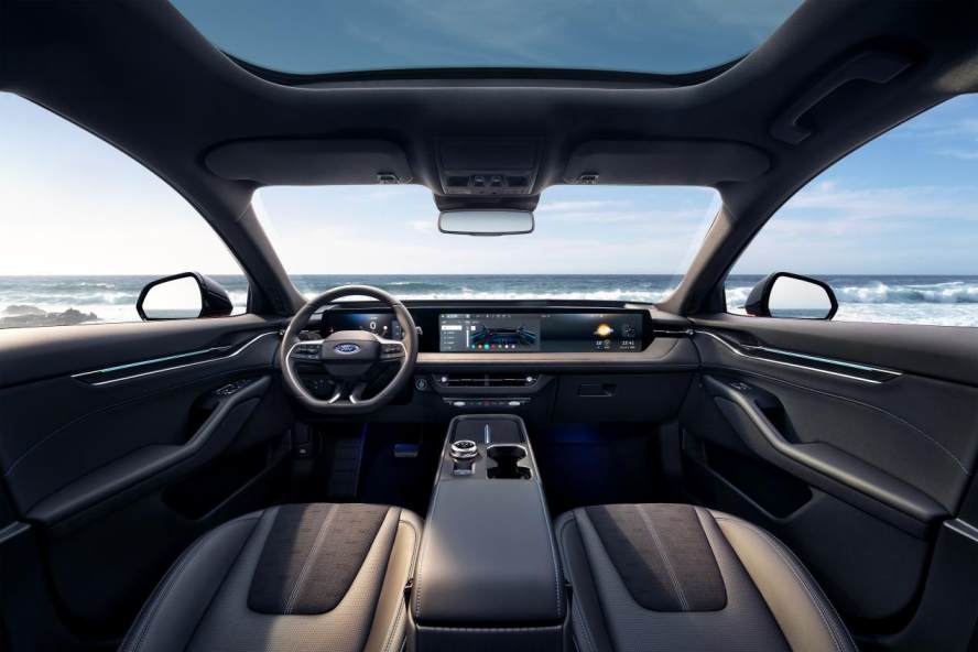 大空间品质享受:福特新蒙迪欧以2945mm超长轴距及1875mm宽体车身打造越级座舱空间,真正实现“真5座”宽适布局。配合520L超大后备箱与新增4.5L中控储物空间,真正做到宽适能装。车内配备贯穿式27英寸4K大屏,搭载座椅通风加热、50W无线快充等舒适功能,以“大空间+豪华配置”重新定义品质出行,为用户带来媲美豪华“大平层”的驾乘享受。