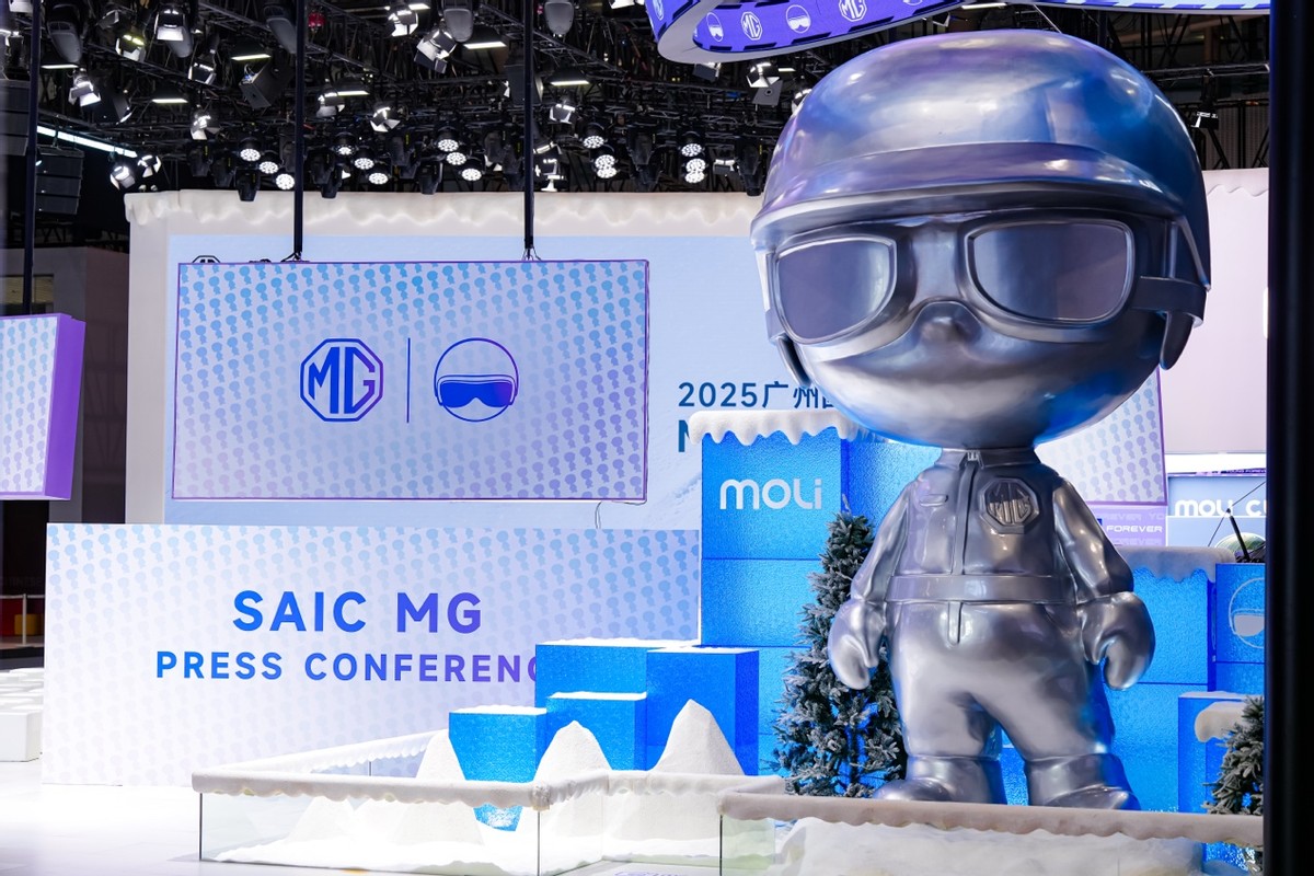 本次广州车展,MG还正式发布了全新品牌数字化IP形象——MOLI。该形象由MG与上汽英国设计中心合作,结合全球设计团队的评审及用户共创,融入经典赛车头盔与防风镜元素,演绎新时代的数字化与电感化风格,展现MG品牌新能源转型的坚定决心。