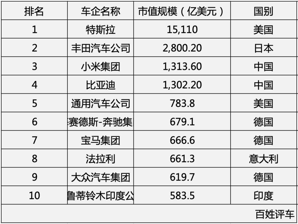 2025年底的全球车企市值榜上,排在最前面的不再是年销近千万辆的传统巨头,而是一批打法迥异的新玩家。特斯拉以1.5万亿美元稳坐头把交椅,它最大的标签是自动驾驶生态的先驱者和领跑者。紧随其后的是小米(1313亿)和比亚迪(1302亿),一个靠消费电子基因跨界造车,一个从电池起家打通全产业链。反观丰田,市值2800亿美元,看似“保守”,却在电动热潮退潮后,靠着混动技术的深厚积累和遍布全球的制造体系,稳稳接住了市场的震荡。