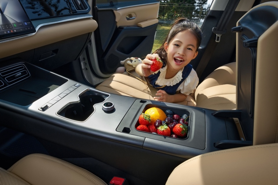 三大舒享配置,全部上车:冰箱、座椅通风加热、感触式广角全景天窗