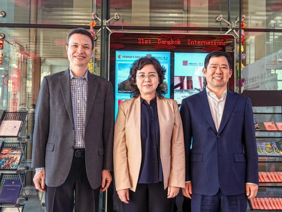 【曼谷中国文化交流中心副主任赵歆(右一)、哪吒汽车创始人、董事长方运舟(左一)】