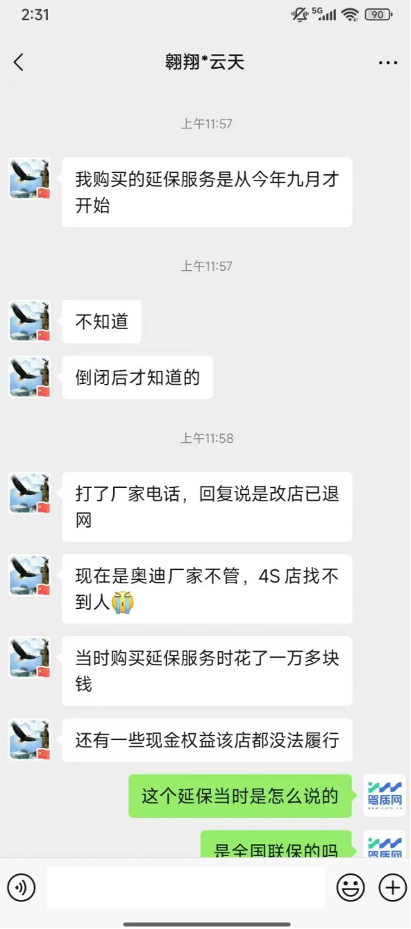 无独有偶,类似的情况并非个例。此前,内蒙古的张先生也遭遇了一模一样的糟心事——他所购车的当地奥迪4S店突然倒闭,导致自己花钱购买的延保服务同样无法履约,维权之路同样困难重重。短时间内接连出现同类投诉,显然不是偶然,这直接暴露出奥迪在经销商管理环节以及售后保障体系中存在着不容忽视的漏洞,让消费者的权益难以得到有效保障。