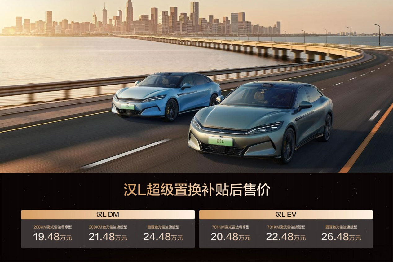 就三电技术来说,汉L的整体水平在业内应该是“鲜有对手”,无论是实现了“兆瓦闪充 油电同速”的超级e平台、全域千伏高压架构、10C闪充电池、还是3万转电机、2.7秒的零百加速,或者同级车型中百余项高阶配置,而且是全系标配,作为一款中高端旗舰轿车,加上现在汉L超级置换补贴后19.48-26.48万元的价格区间,还有诸多上新权益,如果您这两年有换车的打算,2025年出手应该比2026年相对更合适,抽时间不妨亲自试乘试驾、全面体验一番吧。