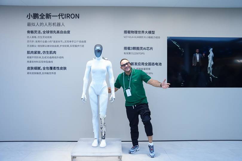 值得一提的是此次车展发布会,小鹏汽车以一段90秒全新一代IRON介绍小鹏X9超级增程视频拉开序幕,视频中的IRON以“特别导览员”身份通过流畅的语音讲解与小鹏车型智能互动。那台在小鹏科技日上“剪腿版”的全新一代IRON,俨然成了2025年广州车展的新晋顶流“网红”,吸引现场观众纷纷“零距离”贴近验身,全球媒体纷纷卷起裤腿与其合影。