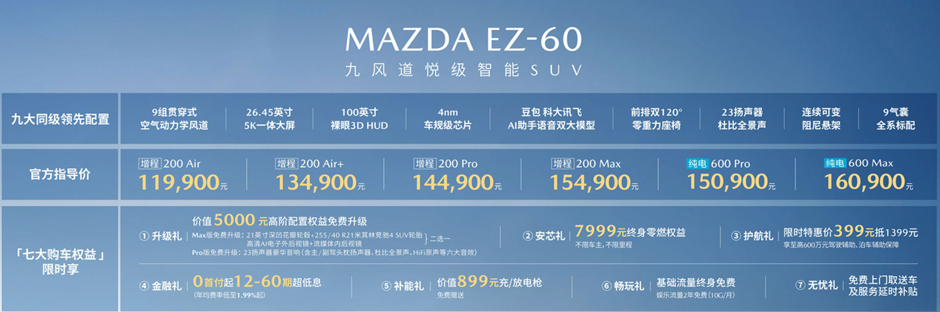 车辆定价方面,马自达EZ-60显然很接地气,增程和纯电两种动力形式满足不同消费需求,目标客群体量又扩大了。