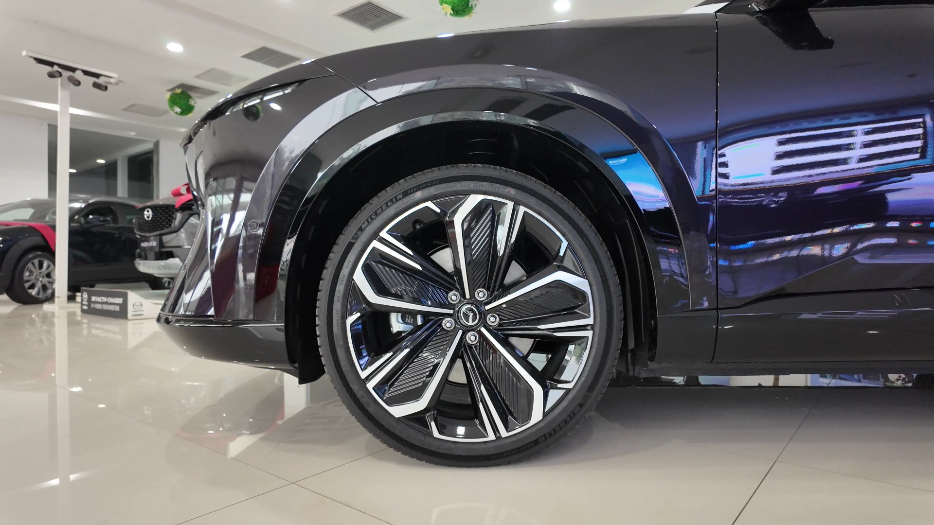 深凹花瓣轮毂造型别致,极有新能源时代的特色,同时又有马家一贯风格,要知道“深凹”,或者说很多偏向驾控的车型都采用负偏距轮毂,EZ-60的深凹花瓣轮毂有点这意思了。